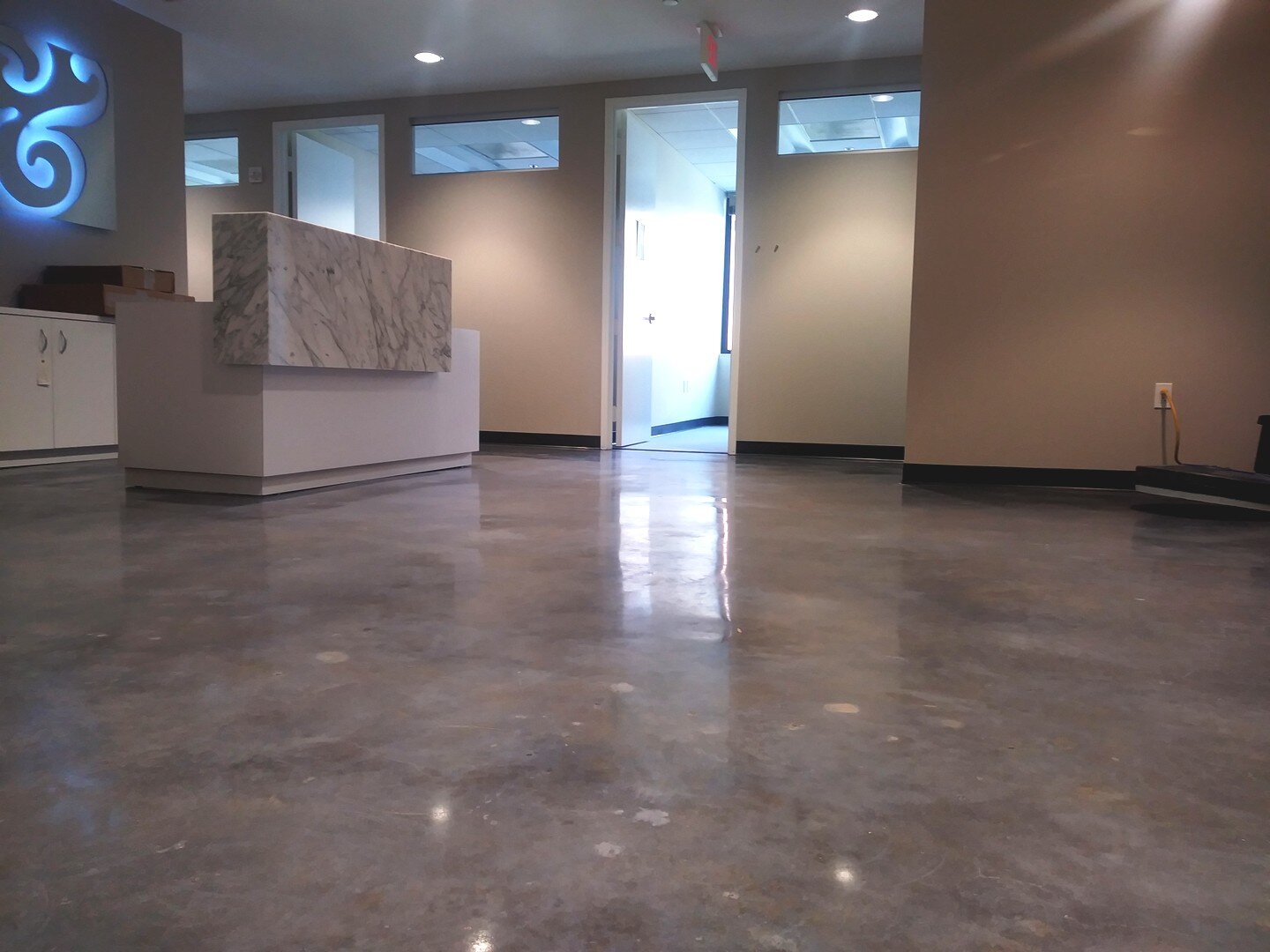 Polished floors are durable, low-maintenance, and stain-resistant. A polished and sealed floor does not require regular waxing or buffing because the polishing process provides a permanent shine. Polished floors are aesthetically pleasing; can be designed and stained to include different colors and types of designs, including logotypes. Concrete can be polished to three different levels of sheen: matte, semi-glossy, and mirror-like glossy and all this, without breaking the bank.